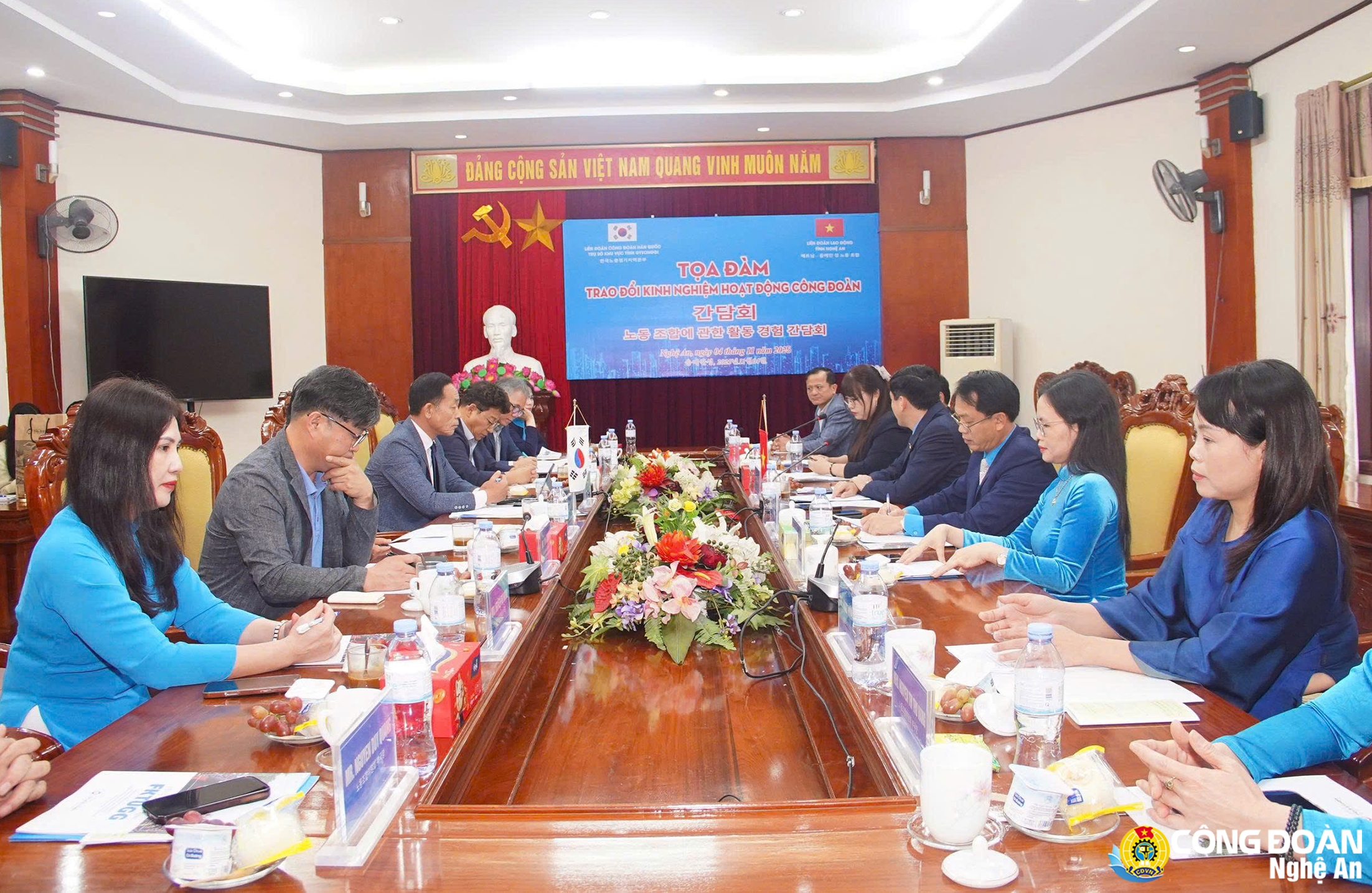 Ngày 4/11/2025, Liên đoàn Lao động tỉnh Nghệ An tổ chức buổi làm việc với Đoàn đại biểu Liên đoàn Công đoàn Hàn Quốc – trụ sở khu vực tỉnh Gyeonggi.
