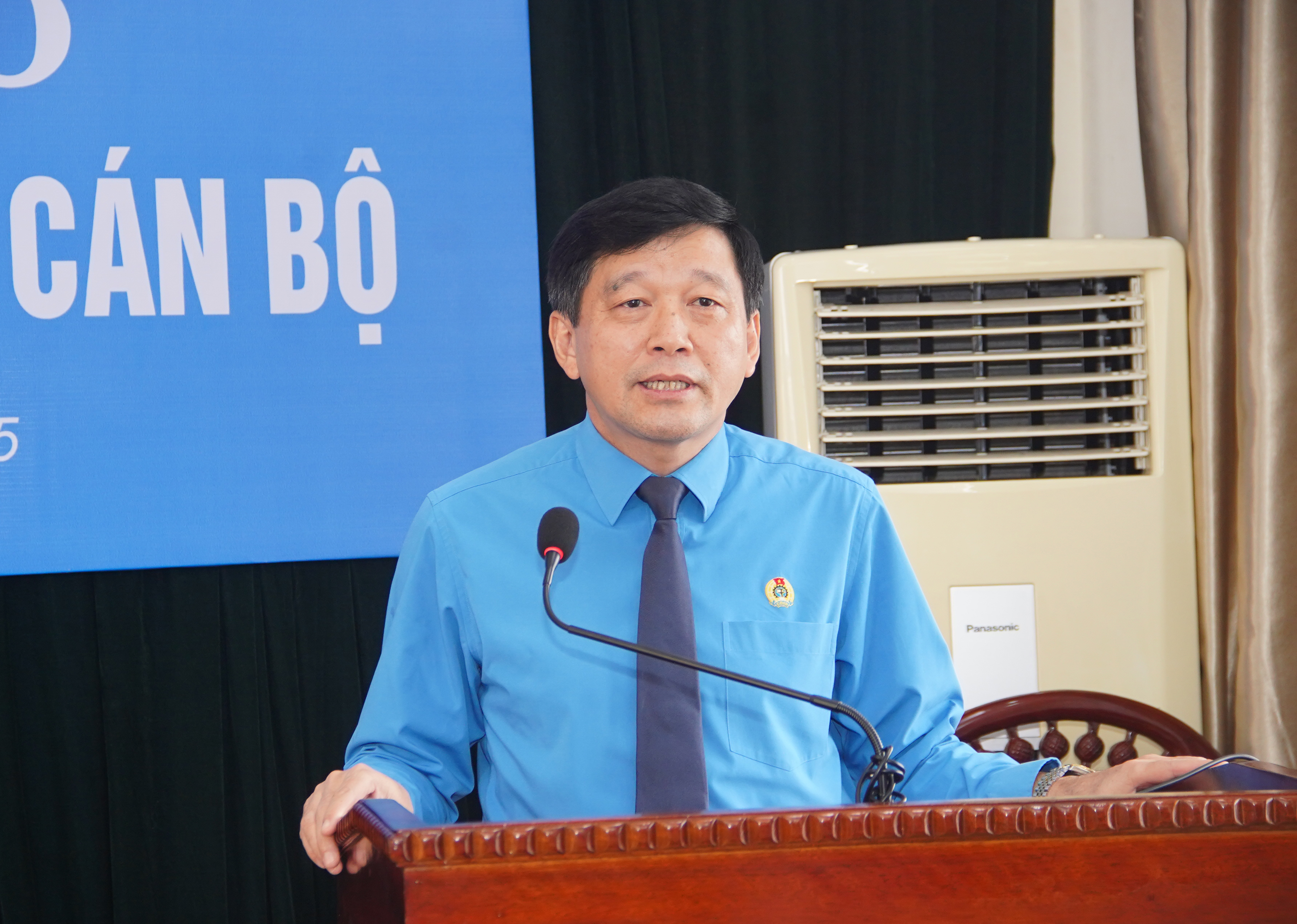 Đồng chí Kha Văn Tám - Chủ tịch LĐLĐ tỉnh phát biểu giao nhiệm vụ