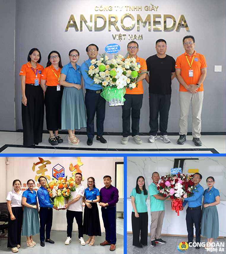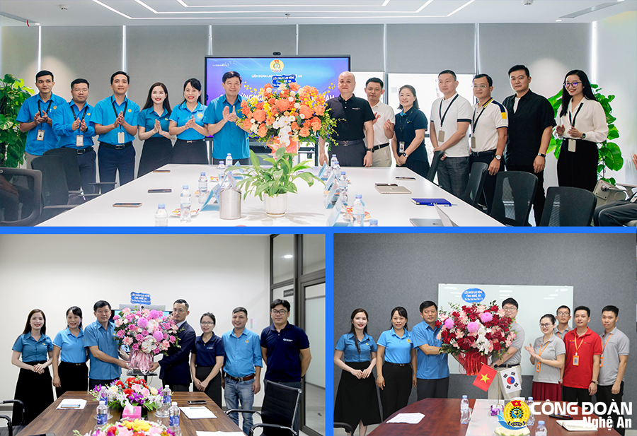 Đoàn công tác số 1, do đồng chí Kha Văn Tám - Ủy viên Ban Chấp hành Tổng LĐLĐ Việt Nam, Ủy viên Ban Chấp hành Đảng bộ tỉnh, Phó Chủ tịch Ủy ban MTTQ Việt Nam tỉnh, Chủ tịch LĐLĐ tỉnh làm trưởng đoàn đã đến thăm chúc mừng các doanh nghiệp tại KCN VSIP Nghệ An;