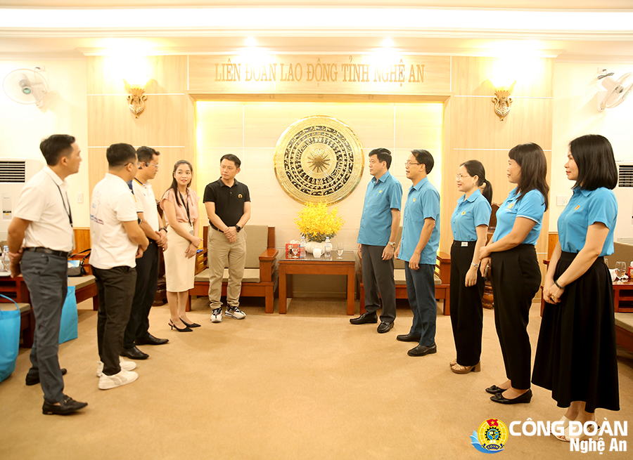 Lãnh đạo Liên đoàn Lao động tỉnh đón tiếp Công ty TNHH Luxshare-ICT Nghệ An. Ảnh: Thanh Vân